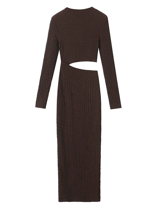 European and American style women's new open design texture long sleeved stand up collar dress
