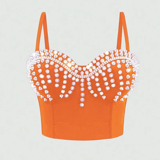 Sexy Design Corset Rivet Solid Outwear Crop Tops for Women Party Camis