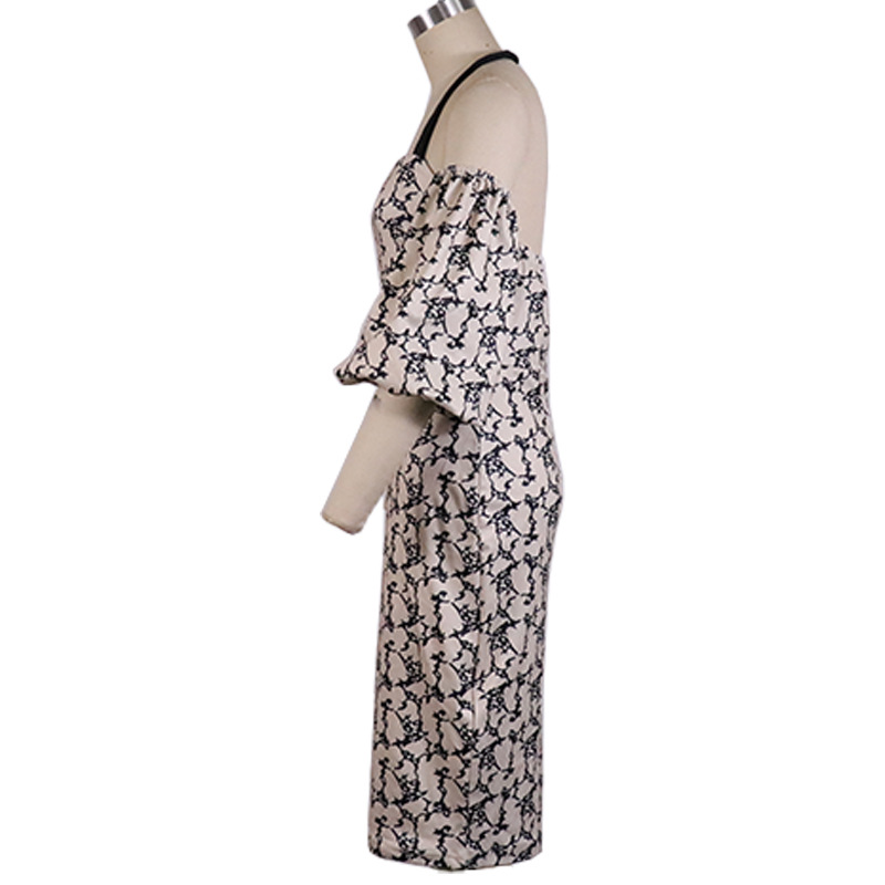 Autumn And Winter Women's Lantern Sleeves Halter Neck Slim Print Hip Sexy Dress